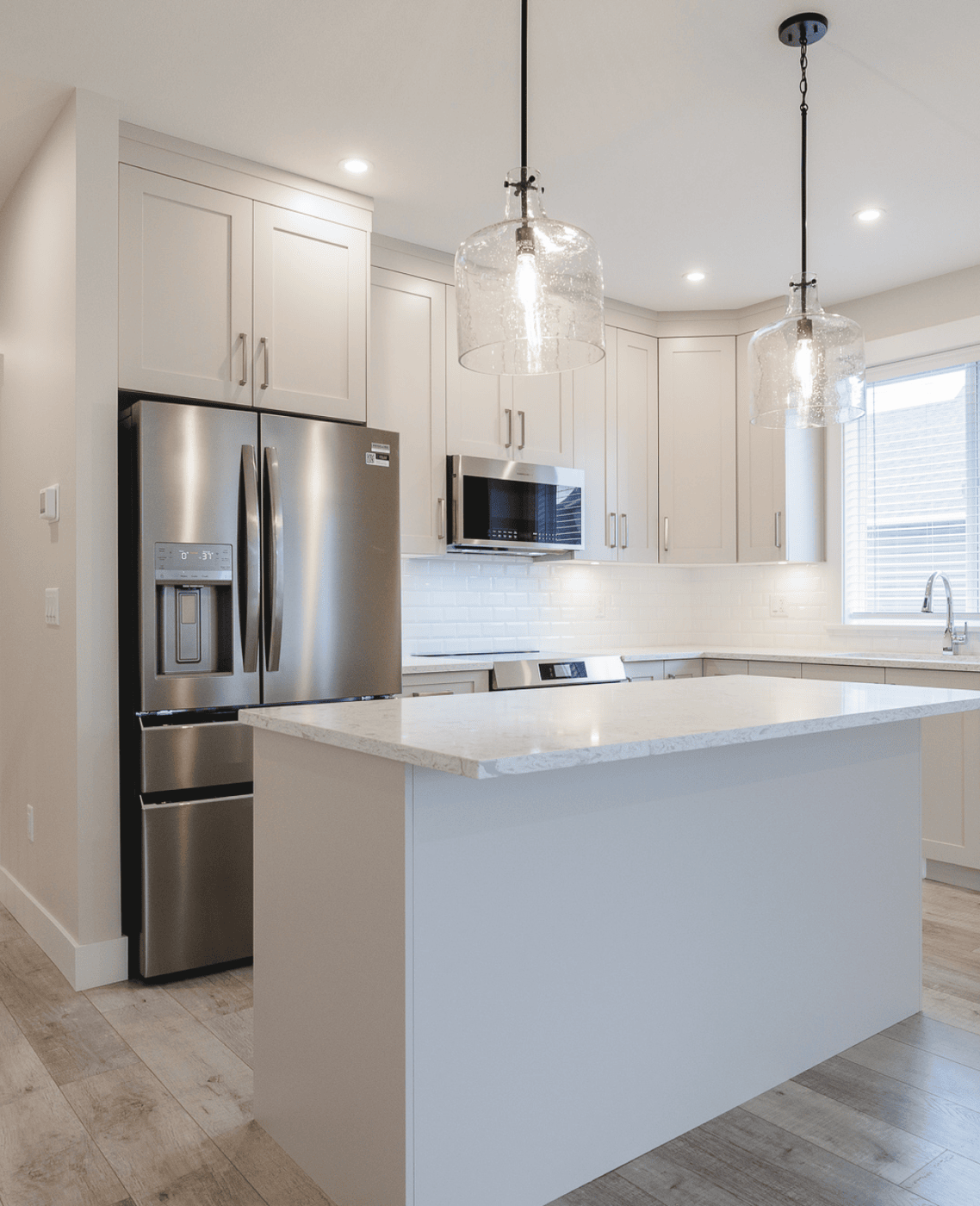 - Choice of two cabinet styles, wide rail maple shaker or high gloss white